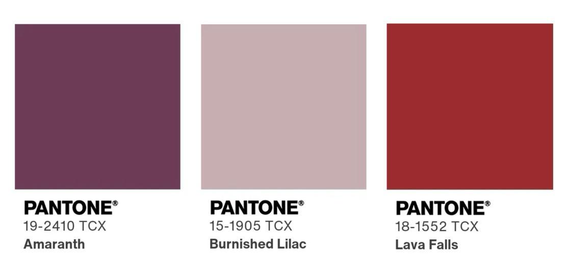 Paletę uzupełniają kolory o wyrazistym, silnym charakterze. Lava Falls (PANTONE 18-1552) to intensywna czerwień, przywodząca na myśl żywioł i pasję. Obok niej pojawia się Amaranth (PANTONE 19-2410) – głęboka purpura o kosmopolitycznym i nieco mistycznym wydźwięku. Całość równoważy Burnished Lilac (PANTONE 15-1905) – delikatny, przydymiony odcień fioletu o nostalgicznej, lekko retro aurze.